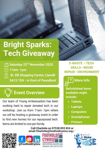 Join us 11am - 1pm where we will be hosting a giveaway event in order to find new homes for our repurposed tech.