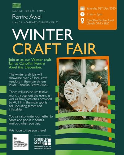 Join us at our Winter craft fair at Canolfan Pentre Awel this December.